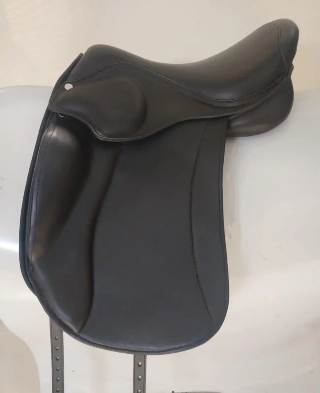 Het Athos Zadel biedt een diepe zit voor optimale stabiliteit, gecombineerd met anatomisch gevormde kniekussens die de houding van de ruiter subtiel corrigeren. De zorgvuldig ontworpen zadelkussens met wolvulling geven het paard maximale schoudervrijheid en ondersteunen een natuurlijke bewegingsvrijheid.
