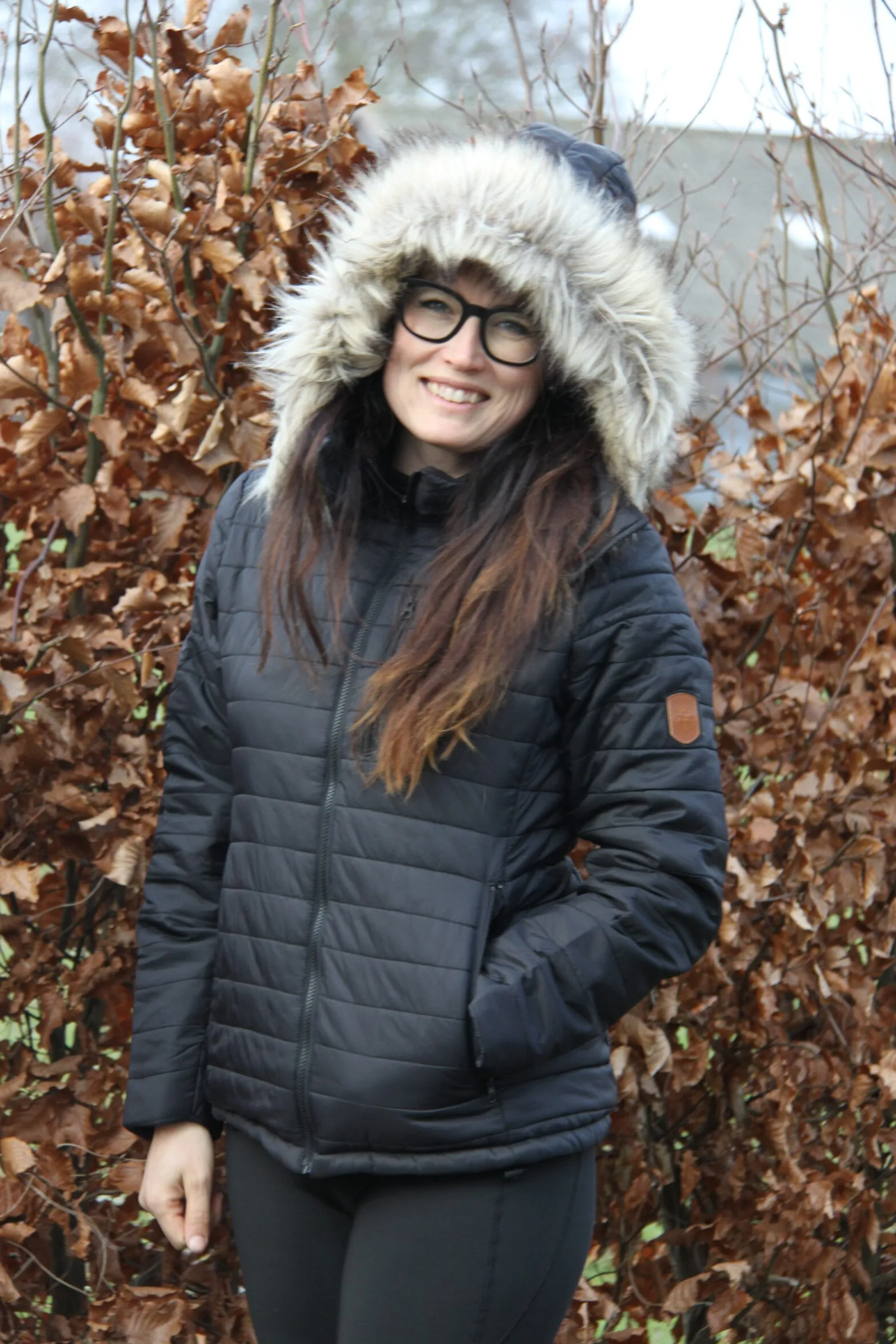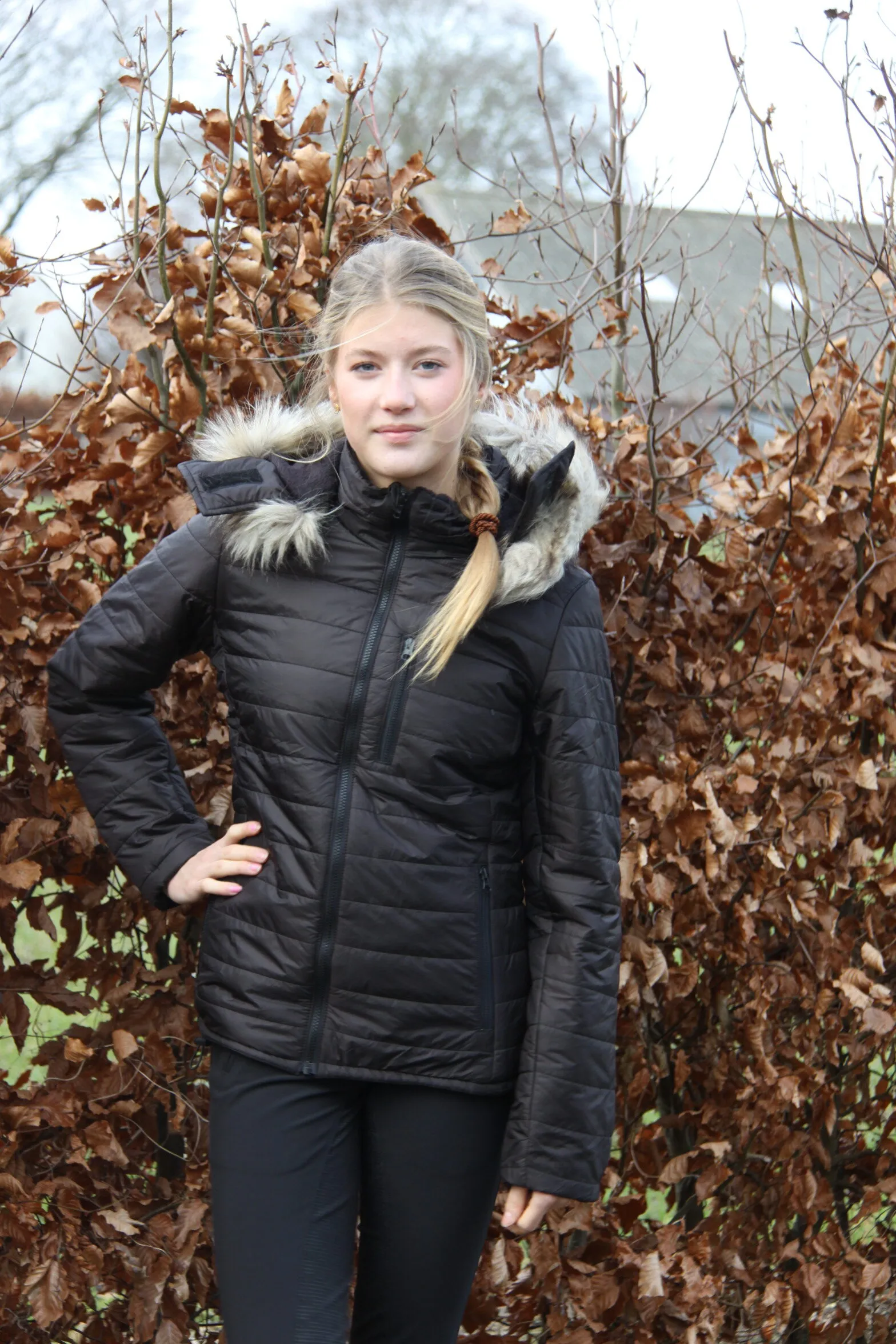 Heerlijk warme, korte winterjas met een afneembaar capuchon met nepbont.